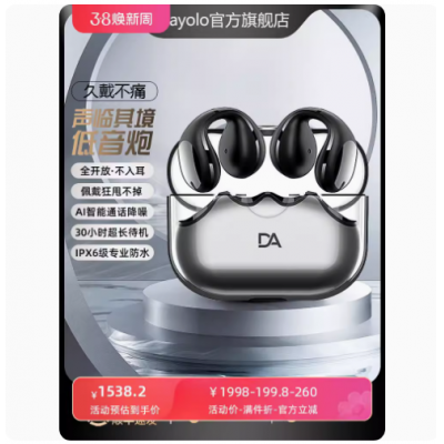 首页 > 数码产品列表 > 耳机耳麦 > 蓝牙耳机2024新款无线不入耳骨传导夹耳式高音质运动耳机跑步专用